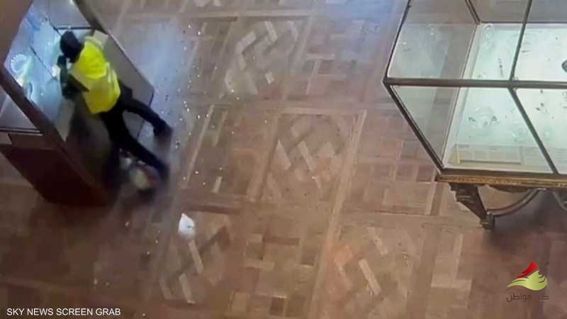 واستعمل أحد اللصين منشارا آليا لإحداث ثغرة في خزانة عرض تاج الإمبراطورة أوجيني، ثم وجه لكمات للزجاج الواقي لإطاحته.