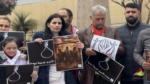 نظم مركز الخيام لتأهيل ضحايا التعذيب بالتعاون مع الهيئة الدولية للتضامن مع الأسرى ( تضامن ) ولجنة الاسرى والمحررين في الجبهة الشعبية وقفة رمزية امام بيت الامم المتحدة الاسكوا تنديدا ورفضا لقرار الكنيست الاسرائيلي باعدام الأسرى والمعتقلين الفلسطينيين وبحضور حشد من الفعاليات والأحزاب والمنظمات والجمعيات الأهلية والانسانية والقانونية والاعلامية وأسرى محررون وبحضور ممثل المستشار السياسي للسفير الفلسطيني في لبنان